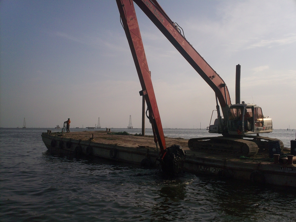 Limpieza y retiro de escombros y desechos inorgánicos del fondo lacustre en los muelles operativos de PDVSA Occidente.